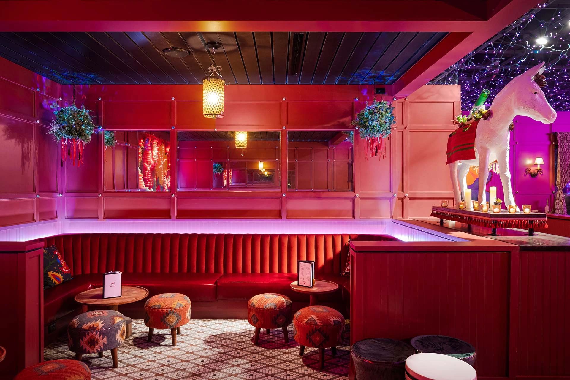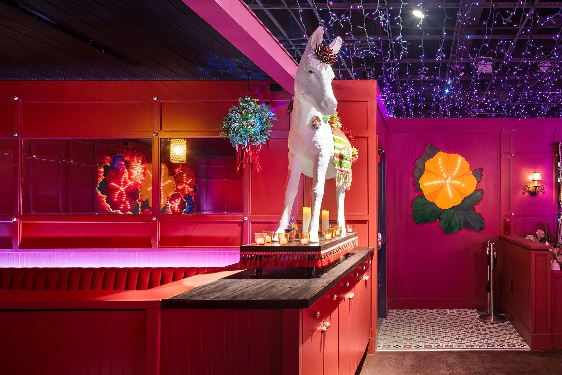 Able to see past the rough existing condition of the building, the development team and Blue Lantern stripped the existing warehouse building down to its beautiful wood bowtruss ceiling, existing brick/block exterior, and found a tenant to match their enthusiasm for the building and the location. Flagship Resturant group brought the building to life with 3 different concepts including - Cham Pang Lanes, Palma, and Ghost Donkey. All the 3 concepts have a completely different design and style, but they function seamlessly with a shared kitchen, shared back-of-house spaces, and all under one roof.